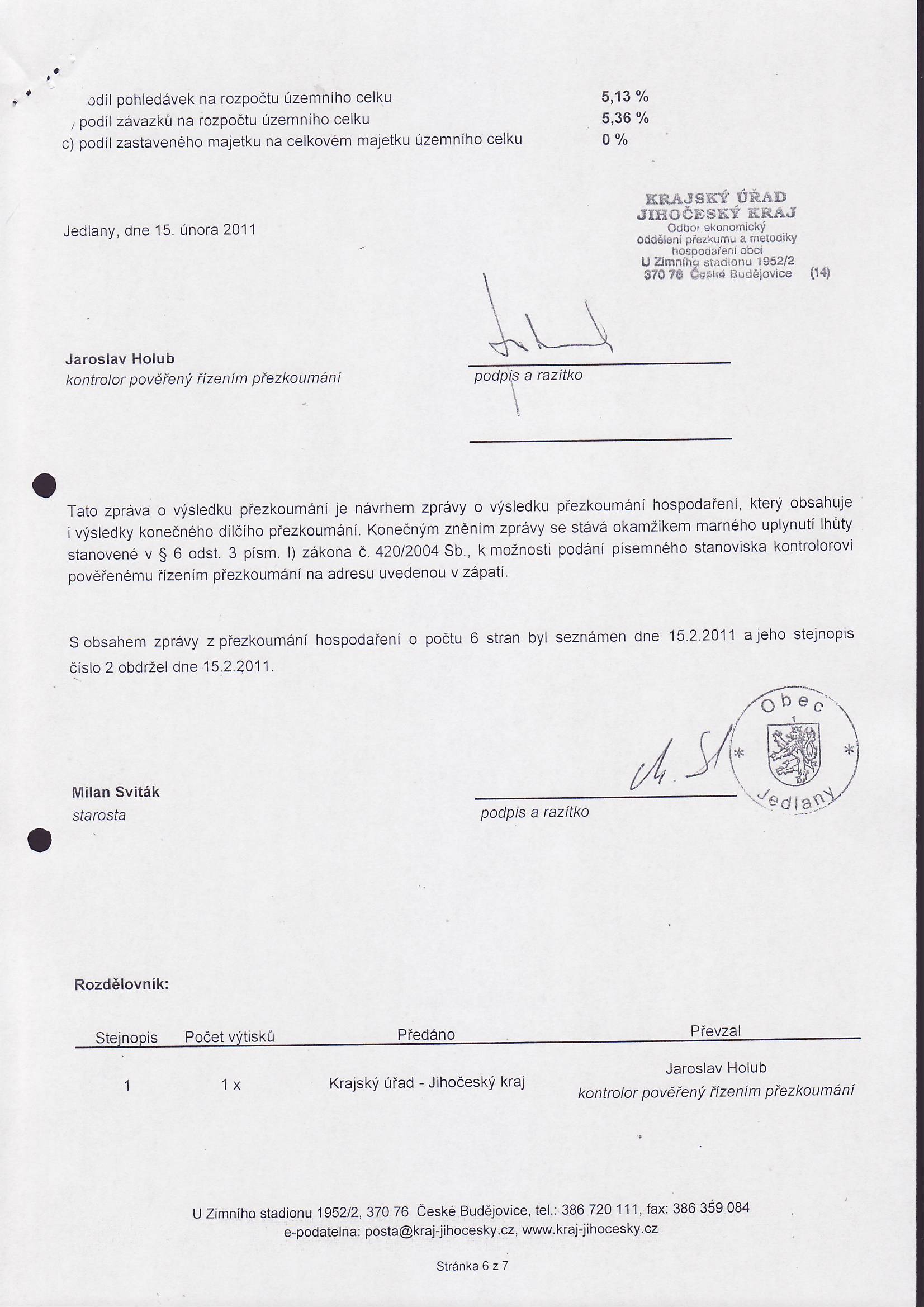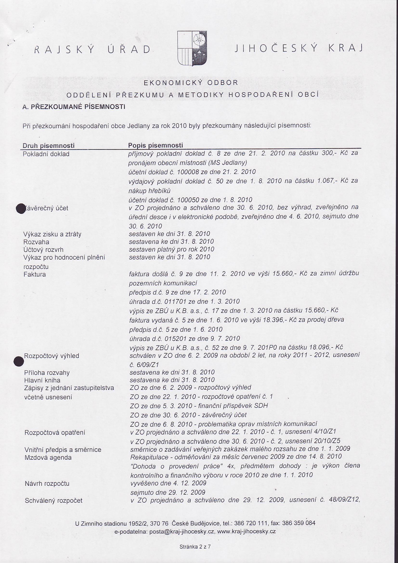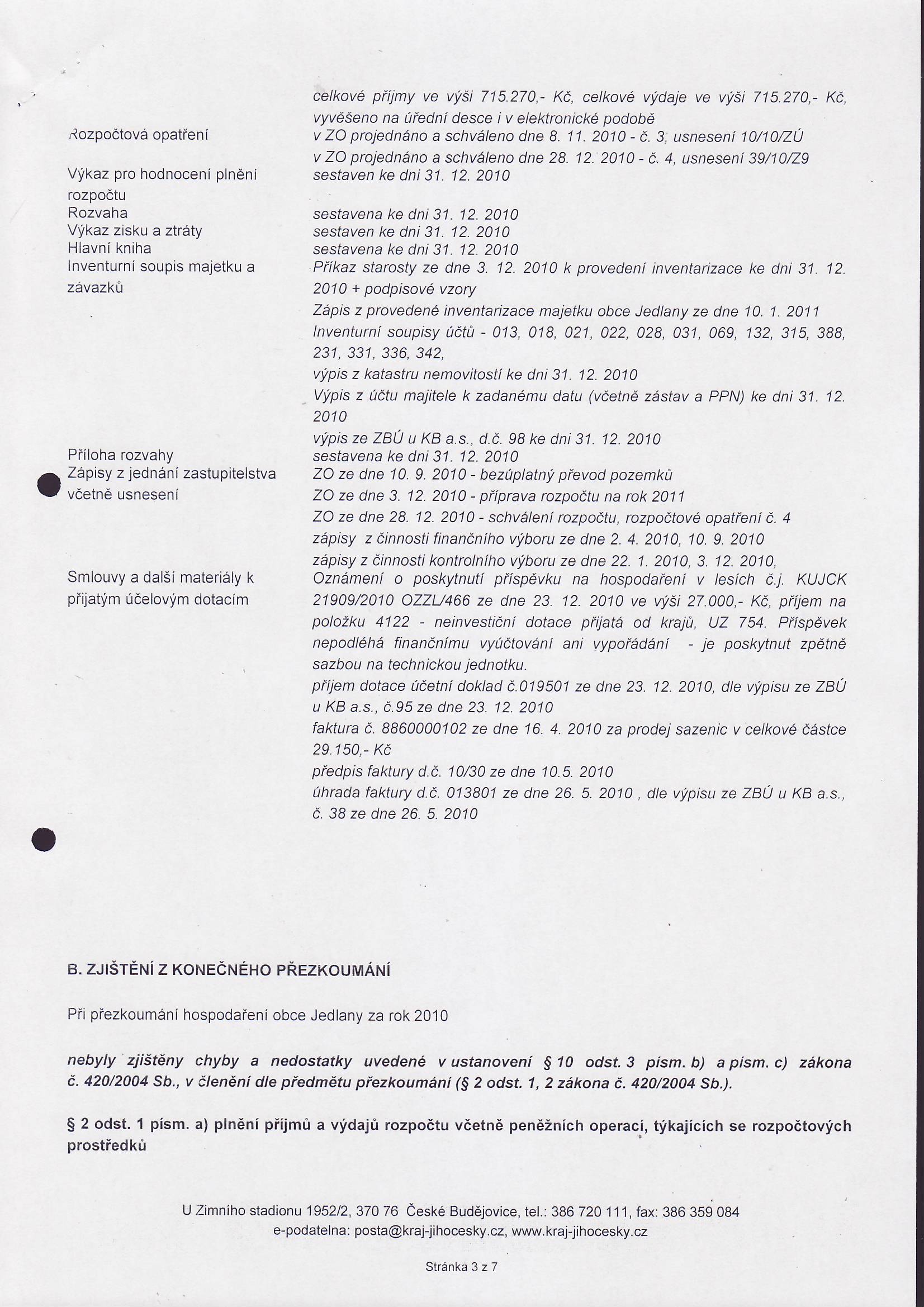 Závěrečný účet obce Jedlany na rok 2010