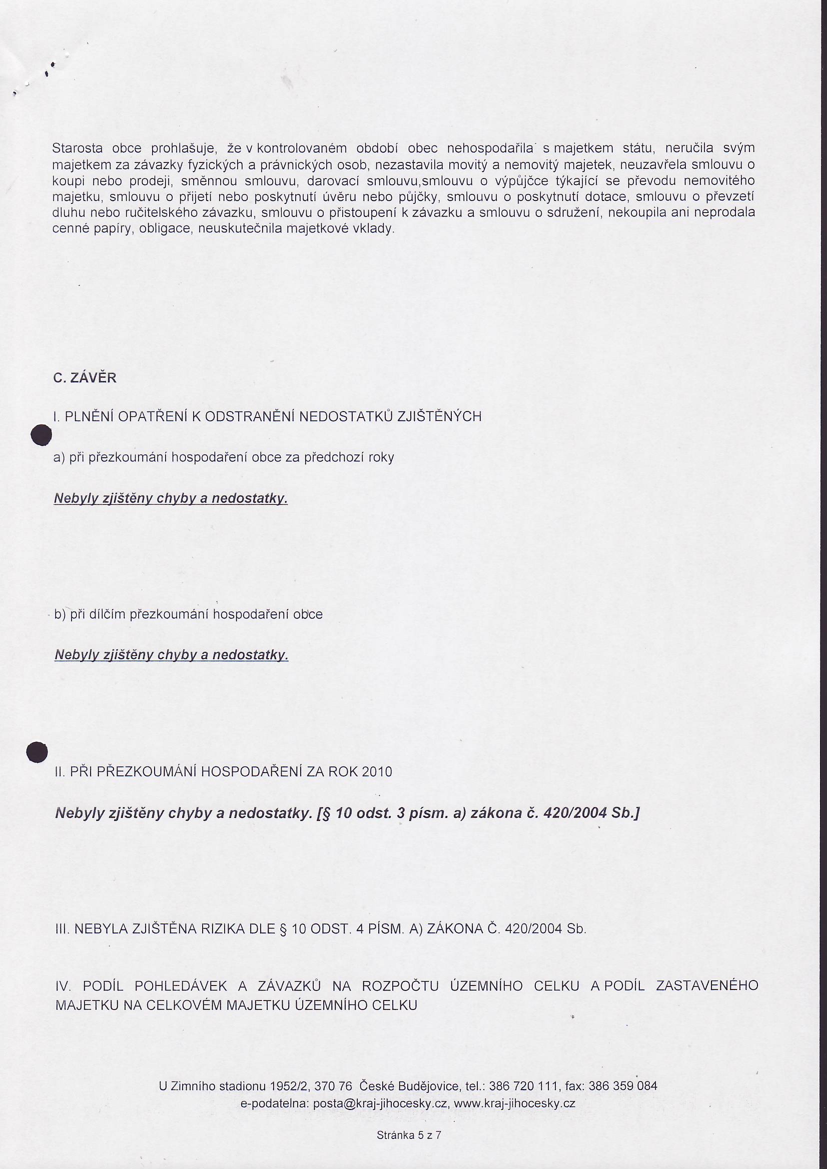 Zpráva o výsledku přezkoumání hospodaření za rok 2010