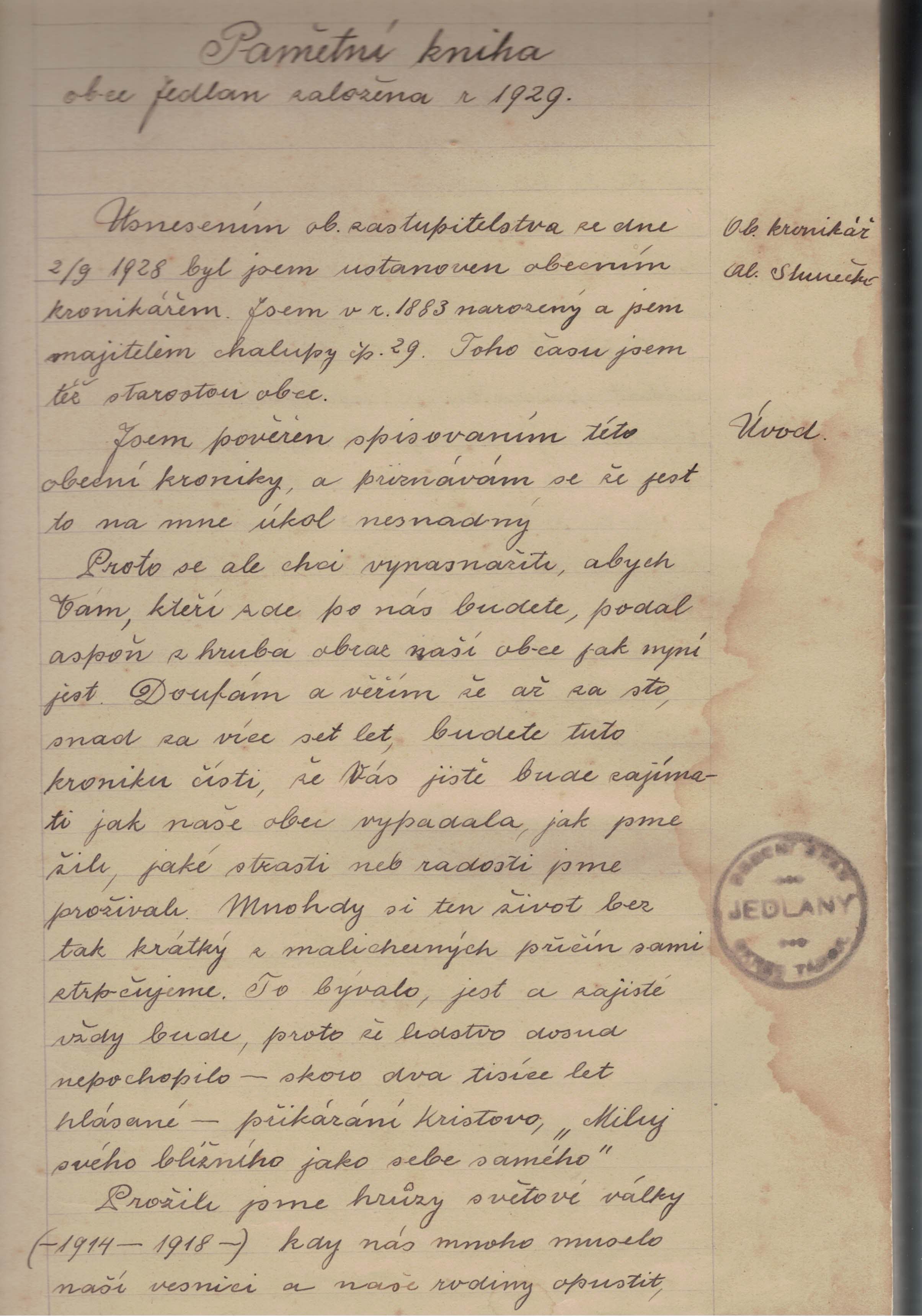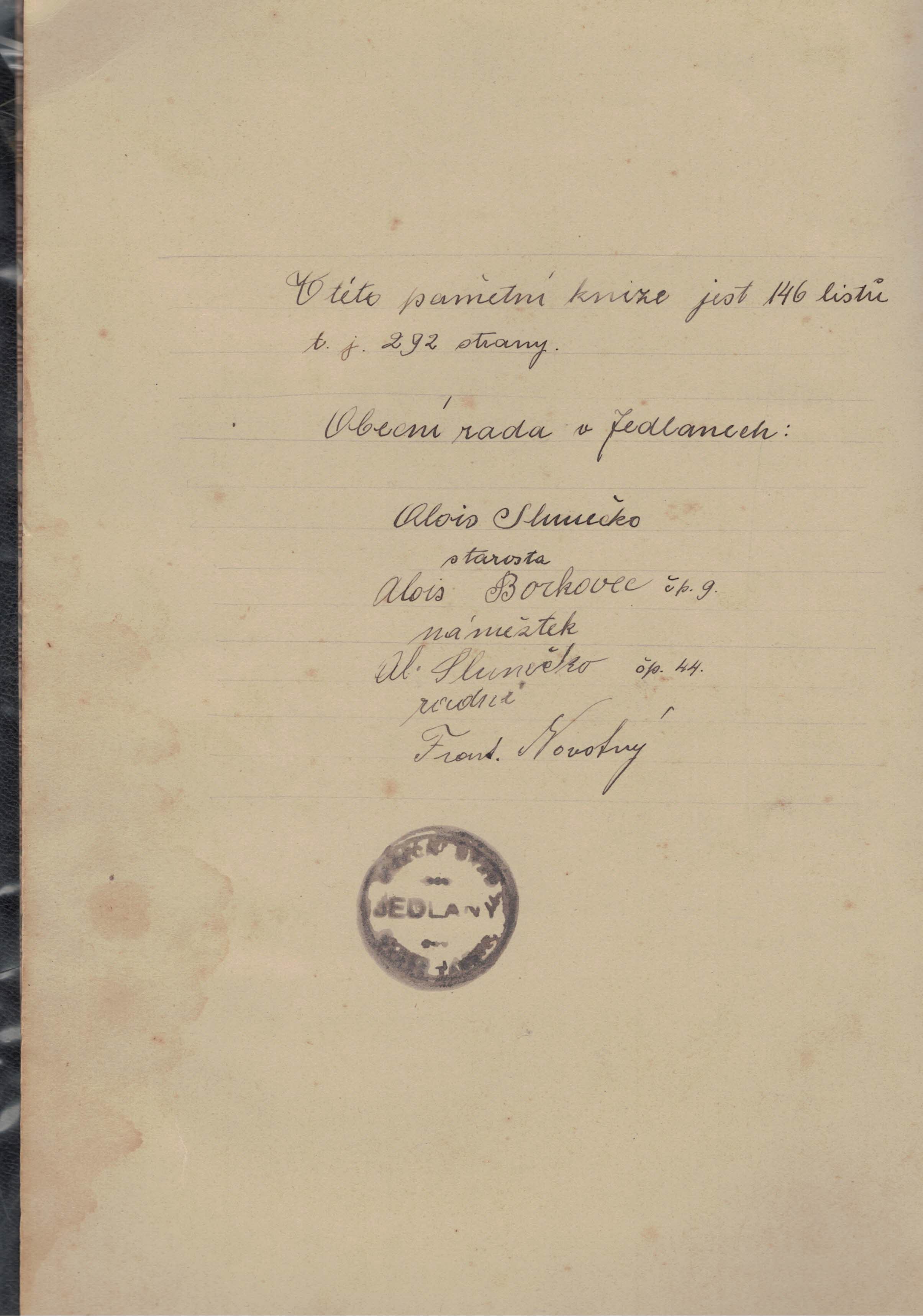 Vážení návštěvníci našich stránek ,vzhledem k tomu,že jsme byli donuceni odevzdat kroniky,které psali naší předci,rozhodli jsme se,že umožníme přístup k těmto historickým zápisům všem svým občanům a návštěvníkům našich stránek.Každý týden bude doplněno vždy deset stránek z kronik obce Jedlany.