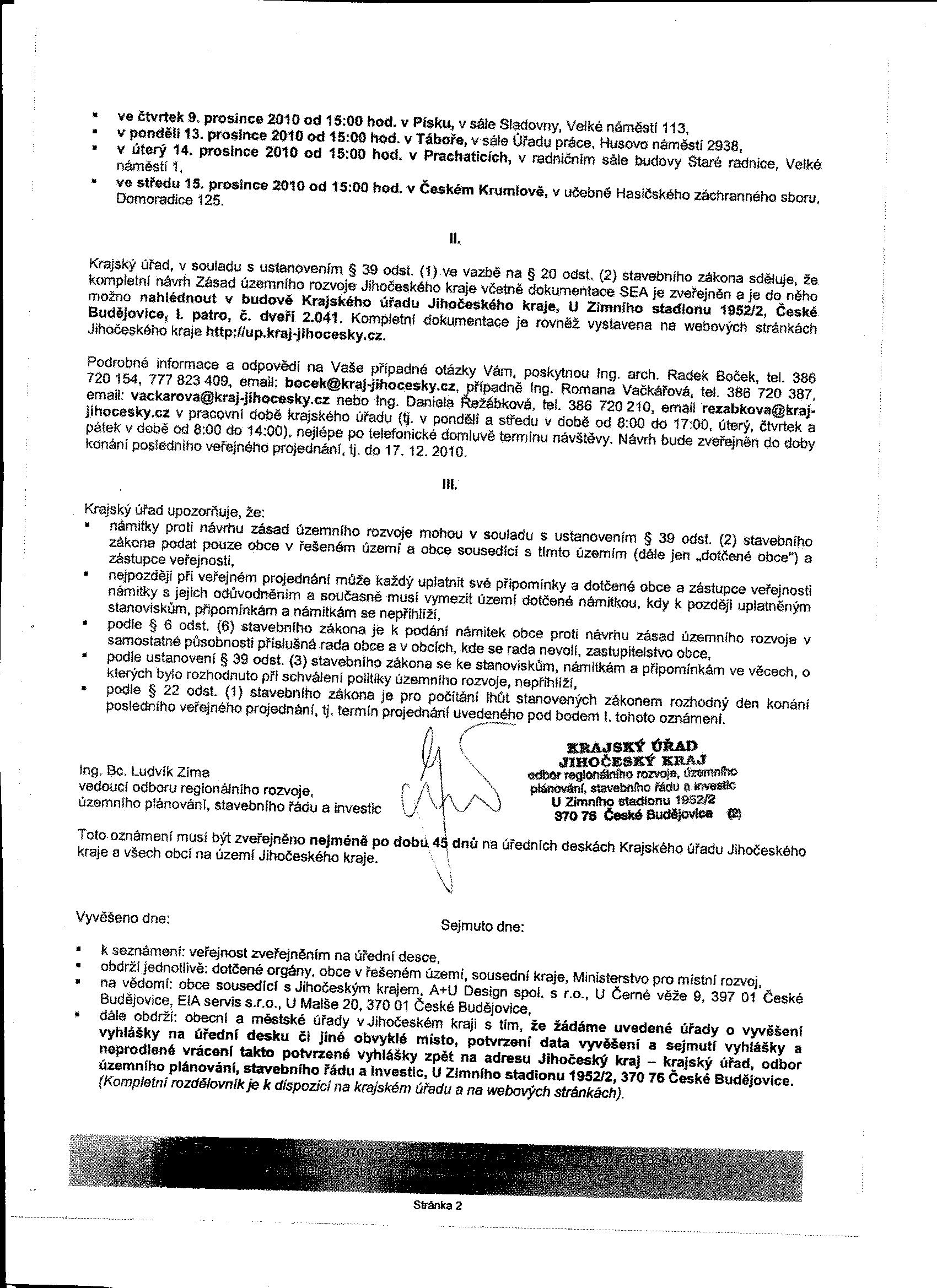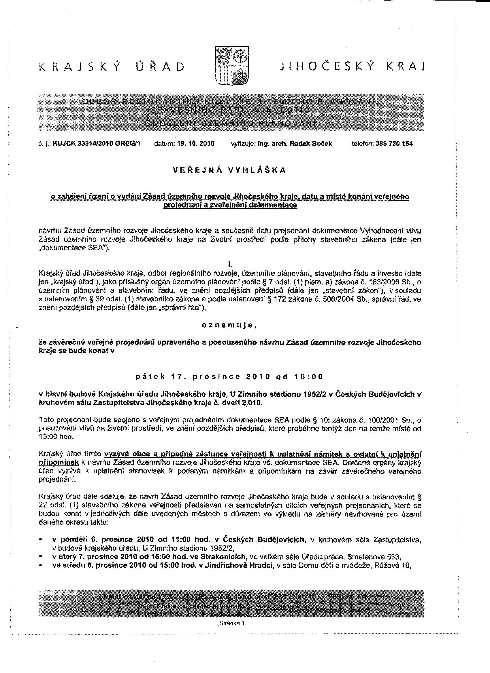 Vyhláška - Zásady územního rozvoje JČN, veřejné projednávání + dokumentace